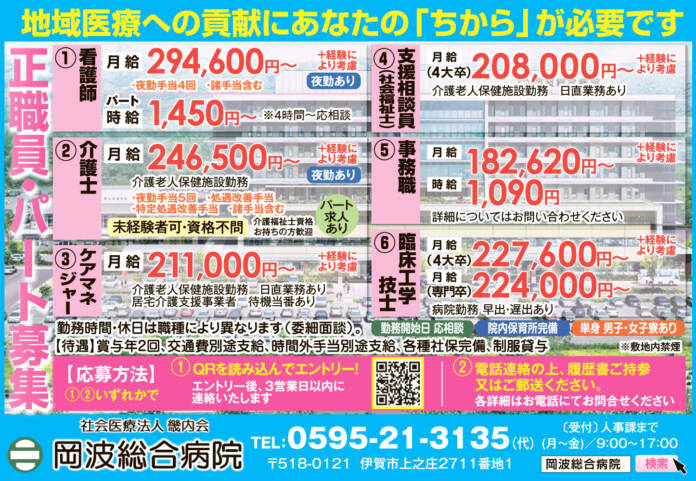 0595-21-3135(代) [受付]人事課まで 月~金/9:00~17:00